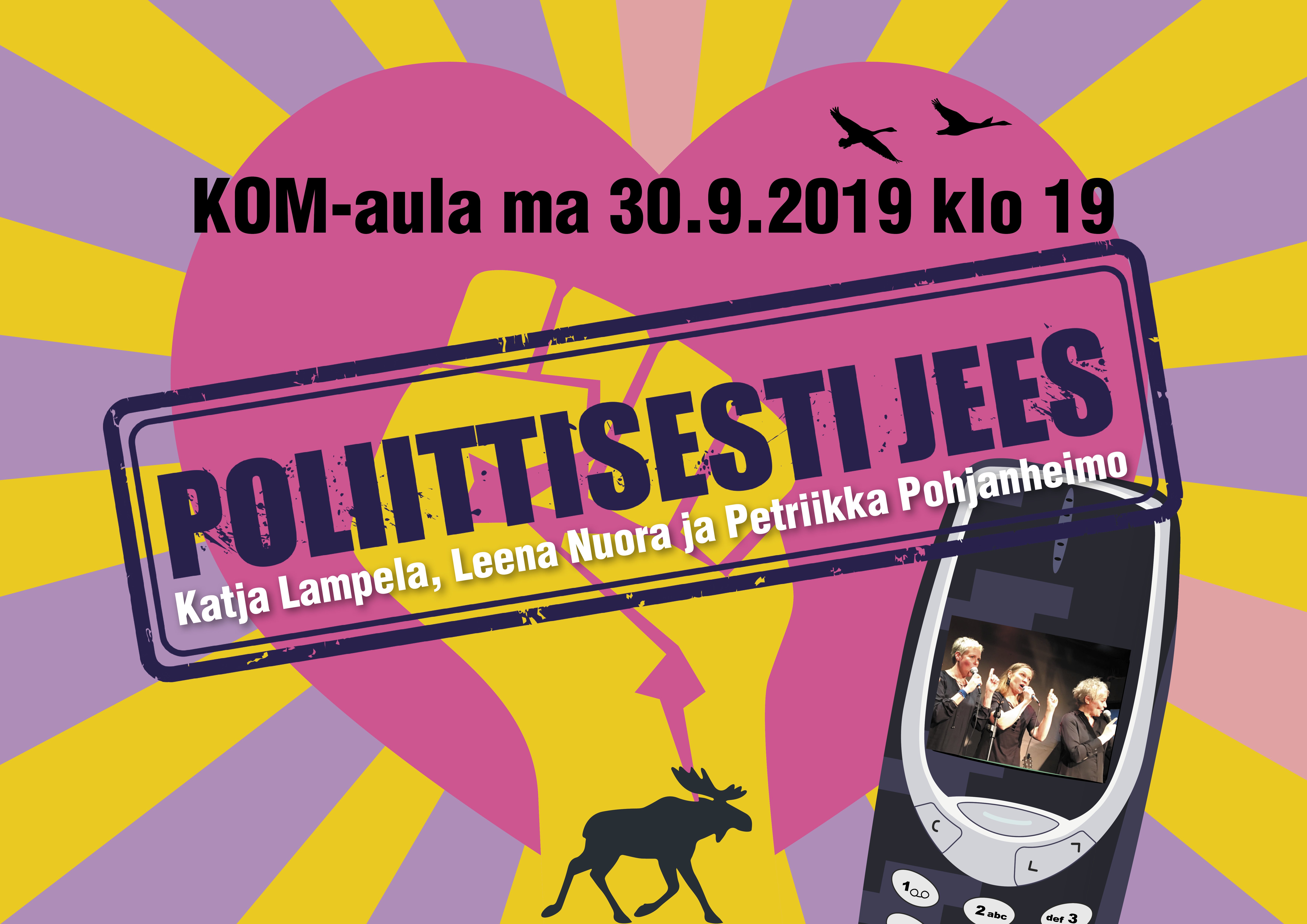 Olen Poliittisesti jees -lauluyhtyeen jäsen. Poliittisesti jees on kahden näyttelijän ja kahden muusikon uusi poppoo, joka esittää Katja Lampelan sanoittamia ja säveltämiä hienoja oivaltavia kappaleita. Yhtye syntyi keväällä 2016 ja möi heti täyteen keväiset keikkansa. Yhtyeen tarina jatkuu ja keikkoja tulee lisää.